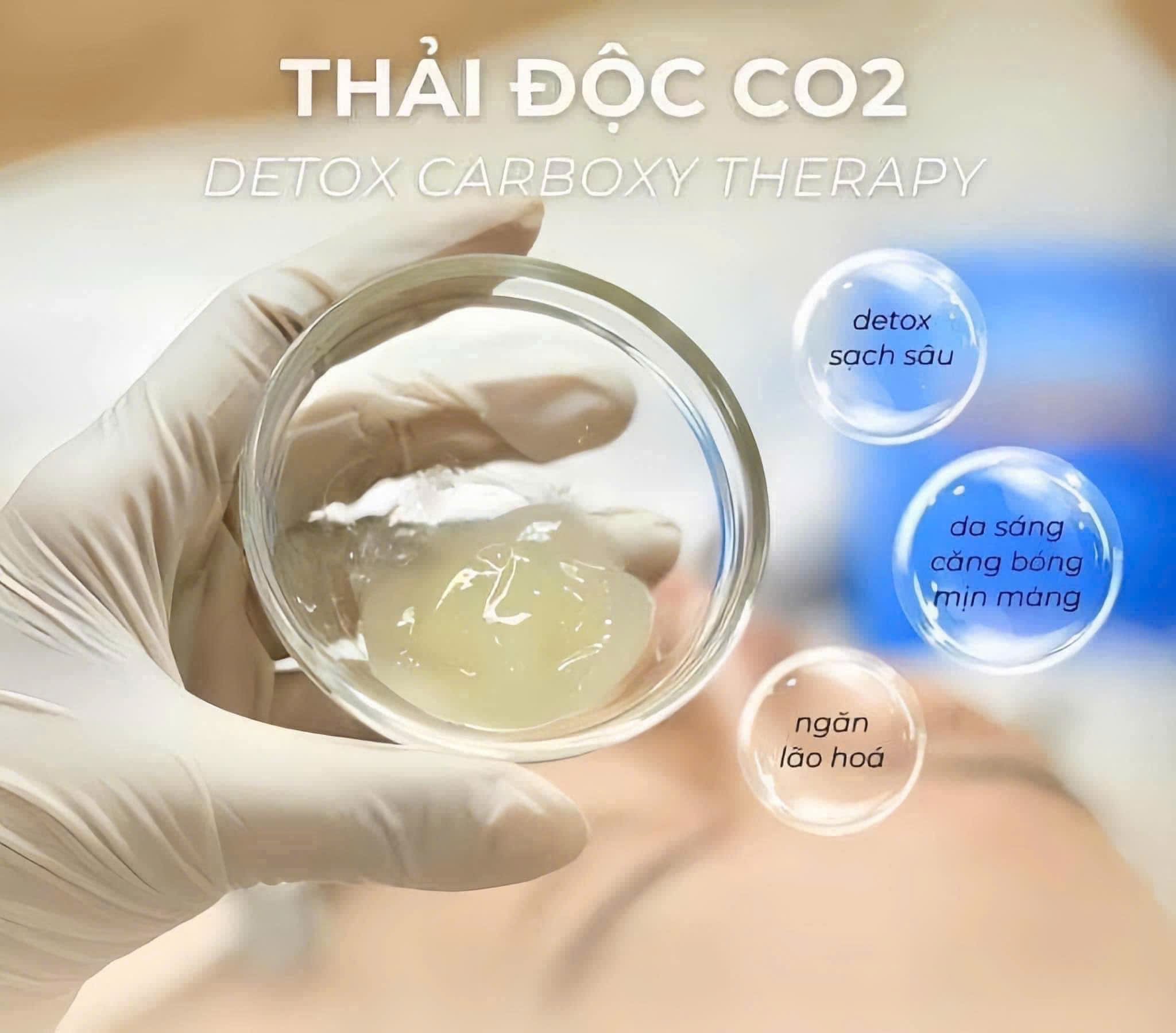 ➕ Liệu pháp Thải độc C02 Carboxy Therapy là phương pháp đưa CO2 – 1 loại khí quen thuộc trong tự nhiên nhằm kích thích các mao mạch hoạt động hết công suất từ đó sinh ra Oxy tự nhiên cho da. Quá trình này nhằm đào thải độc tố, mụn và chất bẩn có trong da cũng như thanh lọc da sâu, đem lại làn da sáng, sạch mụn và săn chắc hơn.